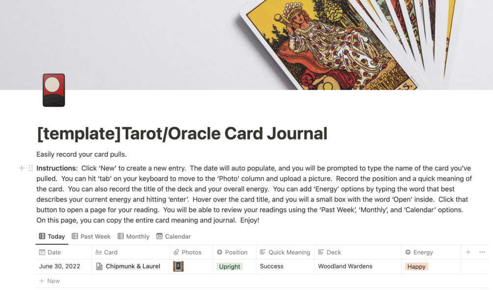 In the entry, you can record personal notes, card meanings, what you ate for breakfast or whatever else you might find important.